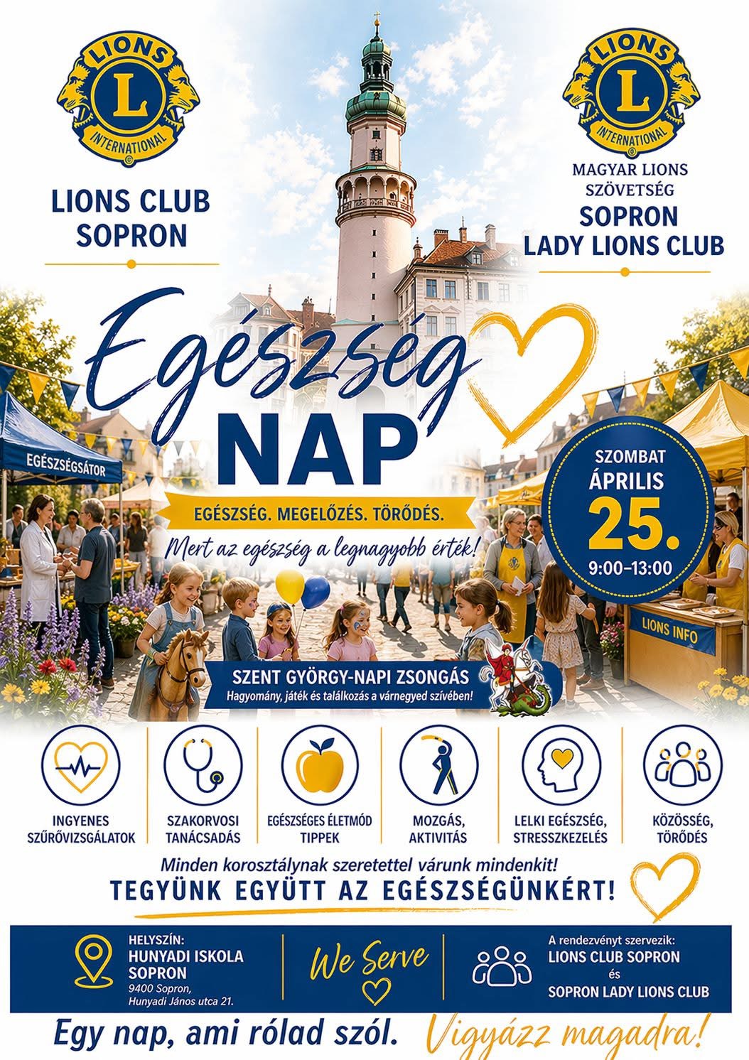 A Sopron Lady Lions Club és a Lions Club Sopron szervezésében szűrőbusz érkezett a Hunyadi János Evangélikus Óvoda, Általános Iskola és AMI épületéhez 2026. április 25-én, az iskola Szent György-napi Zsongás programjának részeként. Az ingyenes szűrések célja, hogy könnyen elérhető lehetőséget biztosítsanak a lakosság számára egészségi állapotuk ellenőrzésére, valamint megelőző tanácsok nyújtására. A program keretében szemészeti szűrés, vércukorszint-mérés, vérnyomásmérés, életmód- és inkontinencia tanácsadás volt elérhető. A gyerekeknek az iskola által szervezett programokon túl rendőrségi és tűzoltósági járművek megteknitésére és kipróbálására volt lehetőségük.